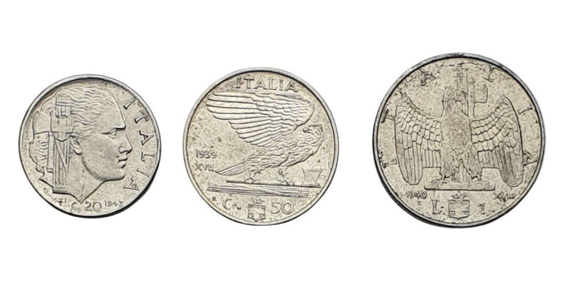 ITALY 20, 50 centesimi & 1 lira / Mussolini Fascist Era / coins lot / 3 pcs.