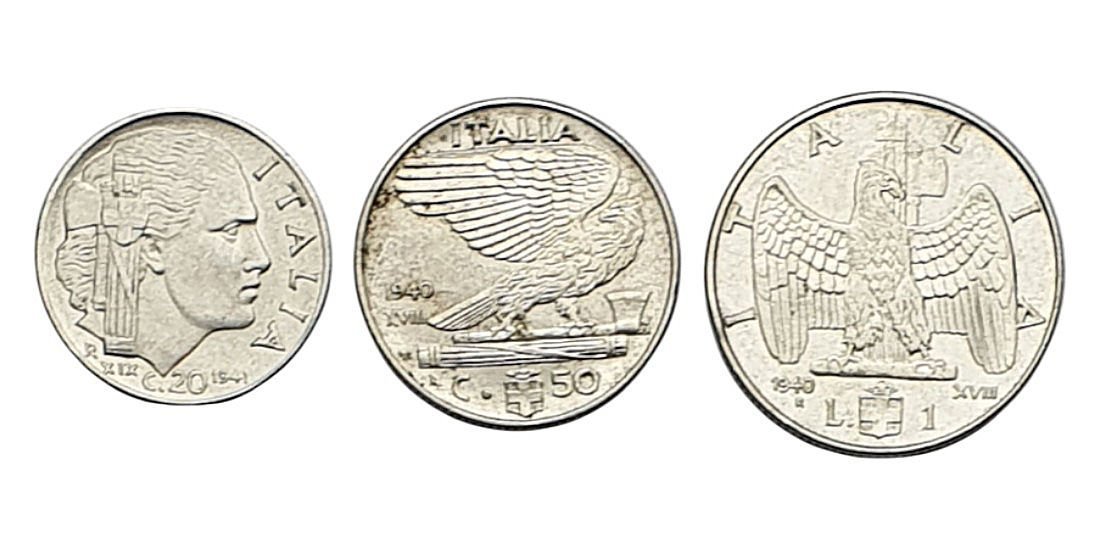 ITALY 20, 50 centesimi & 1 lira / Mussolini Fascist Era / coins lot / 3 pcs.