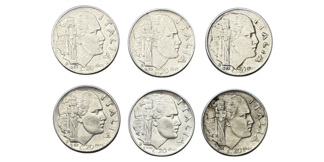 ITALY 20 centesimi / Mussolini Fascist Era / coins lot / 6 pcs.