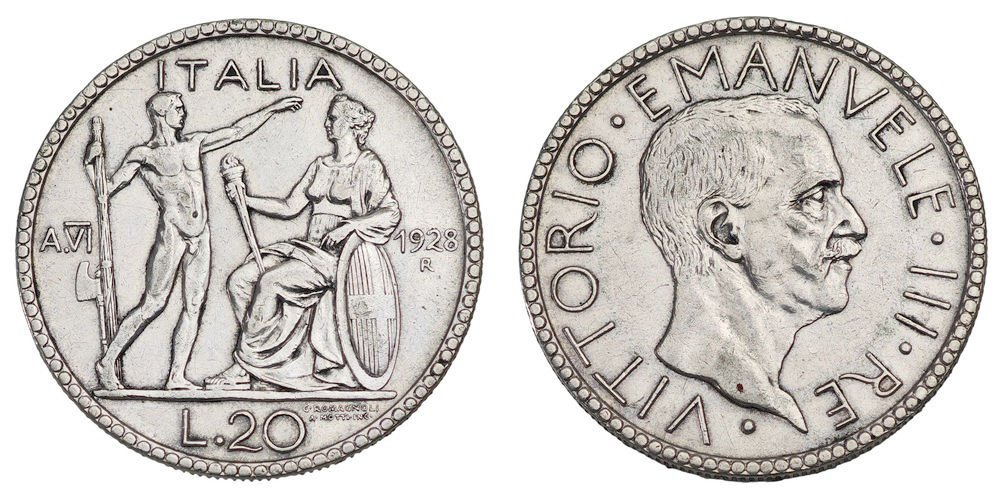 ITALY 20 lire 1928 / Silver / VF