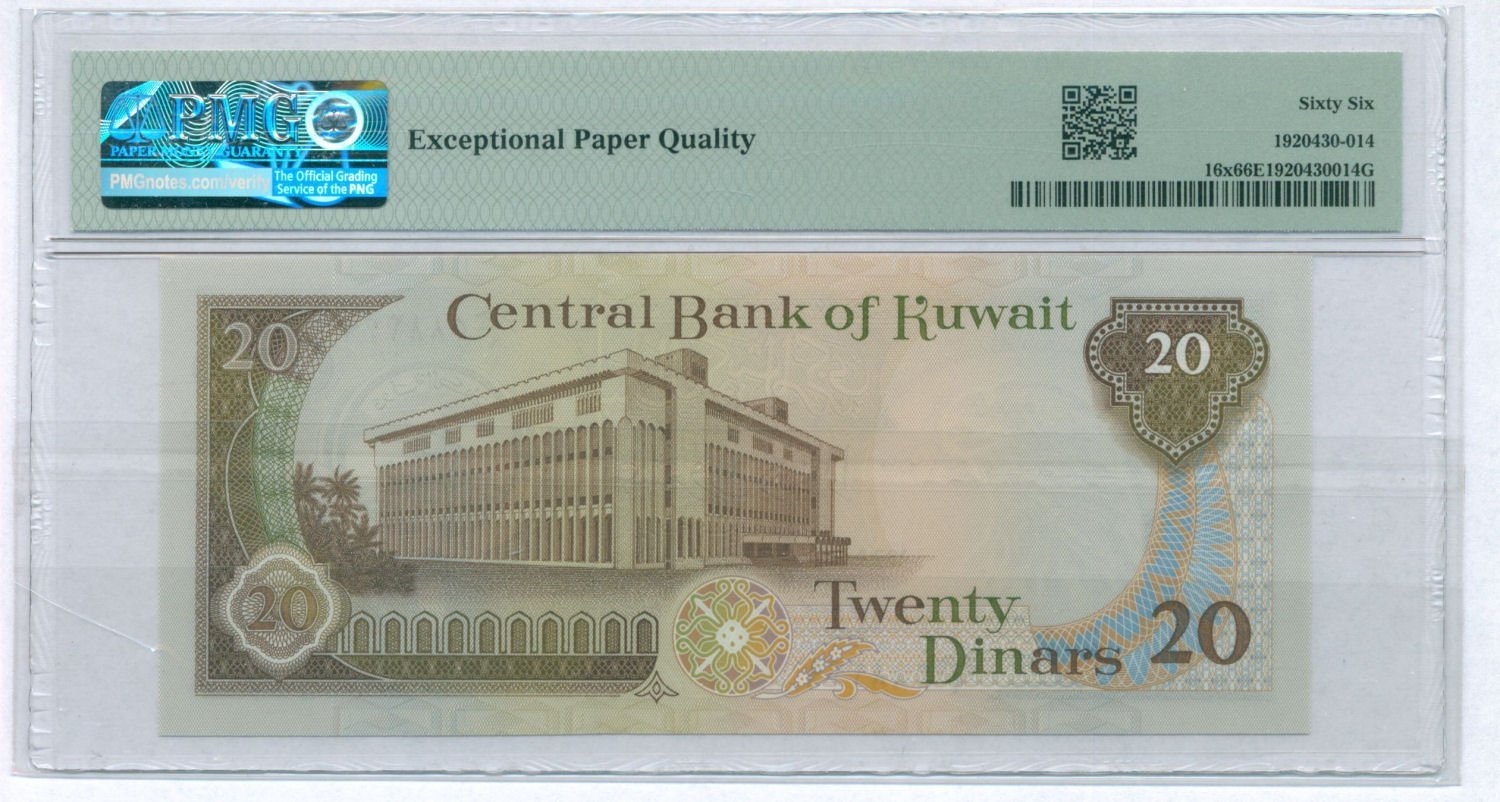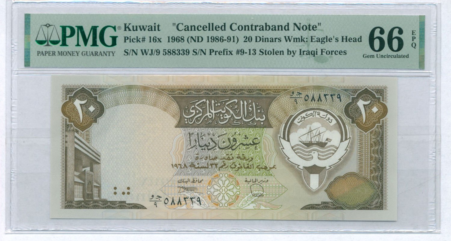 KUWAIT 20 dinars 1968 / Cancelled Contraband Note / PMG 66 EPQ