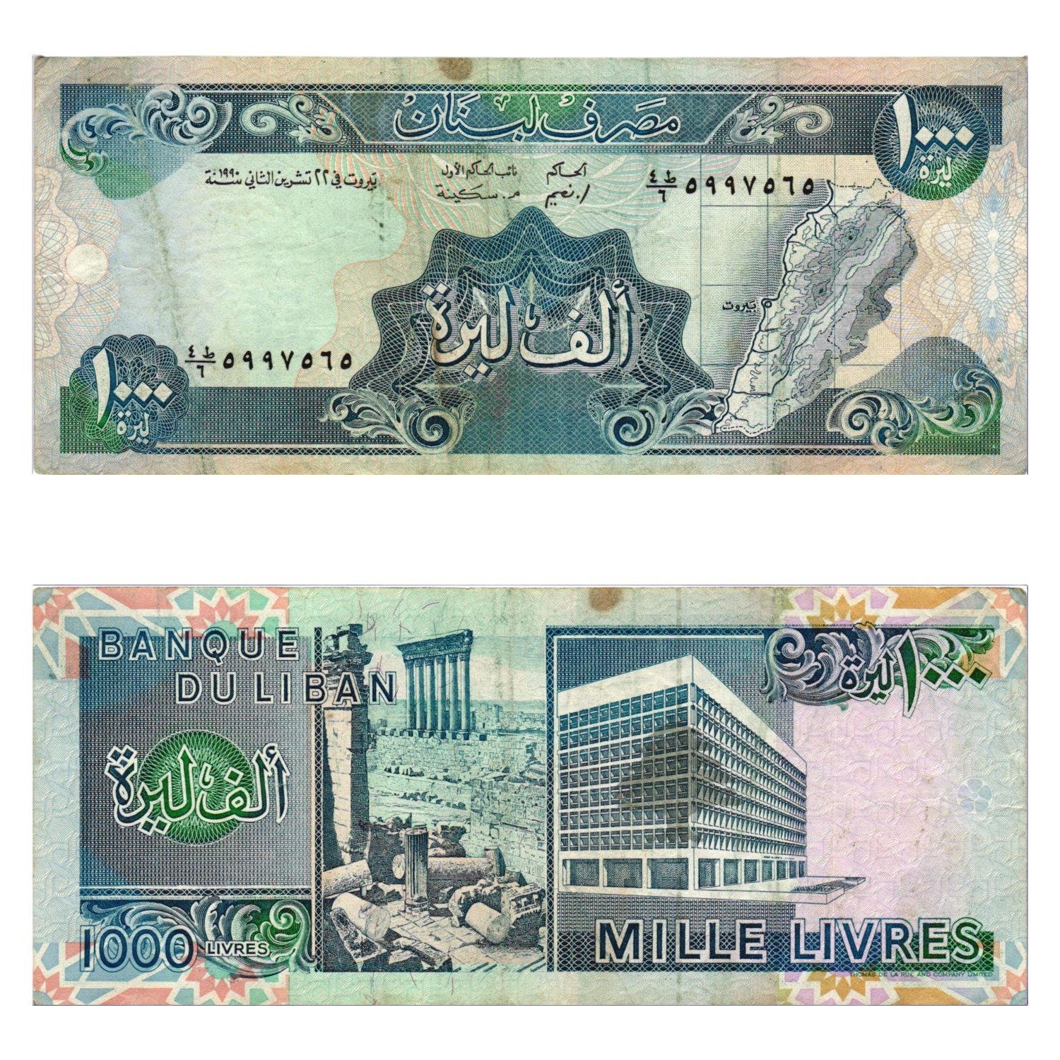 LEBANON 1000 livres 1990 VF-