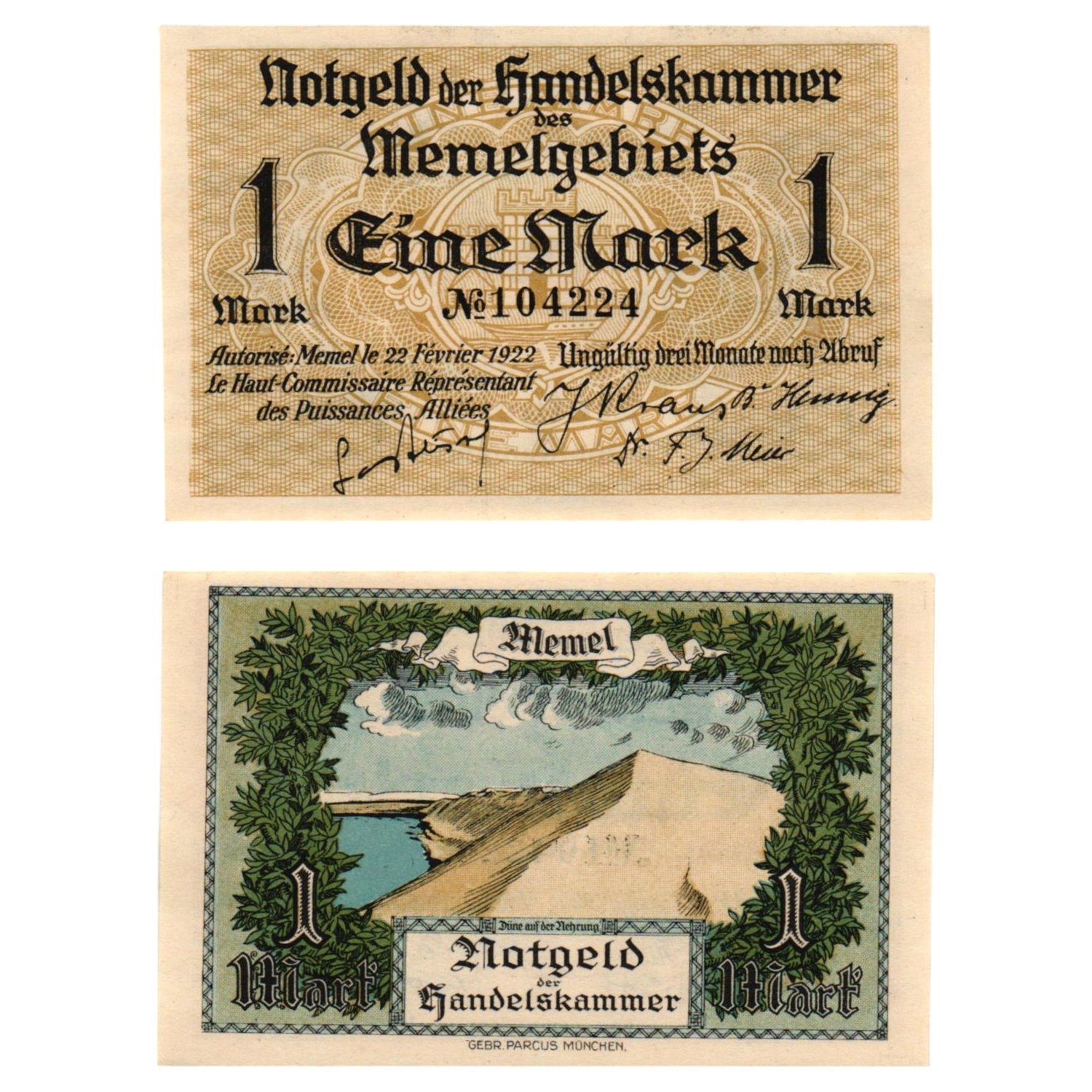 MEMEL 1 mark 1922 UNC