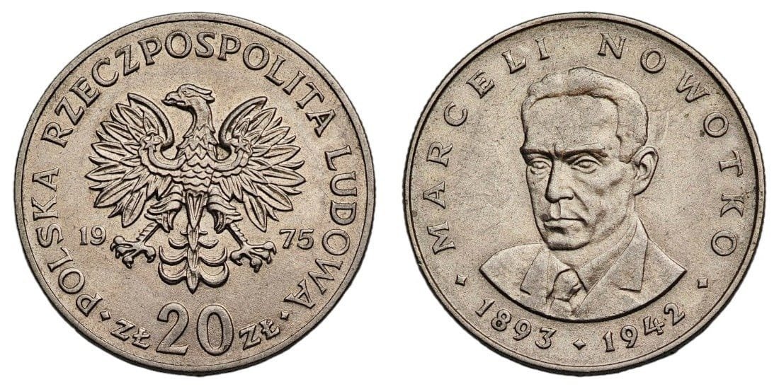 POLAND 20 zlotych 1975 / Marceli Nowotko / UNC