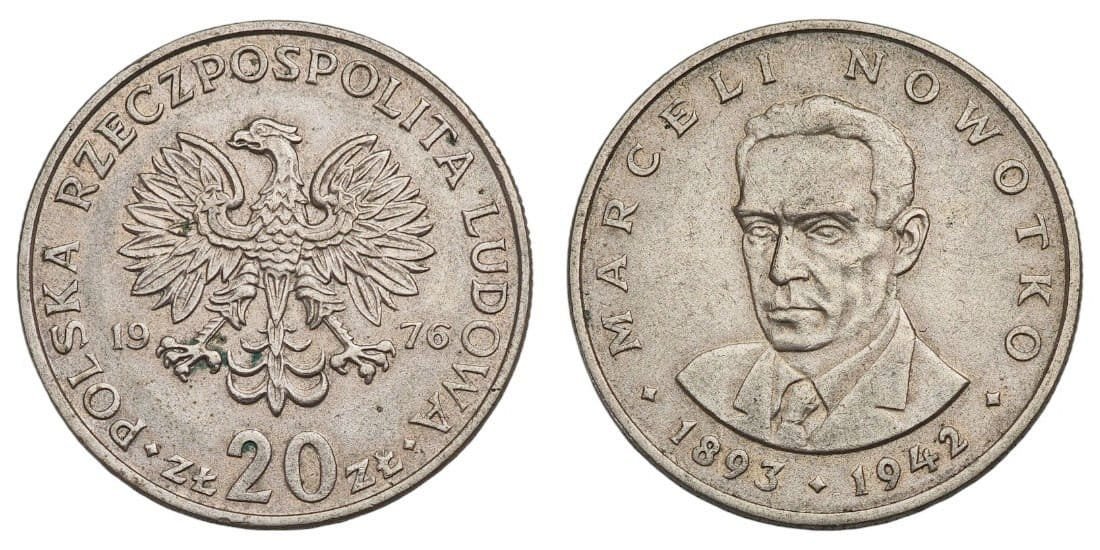 POLAND 20 zlotych 1976 / Marceli Nowotko / VF