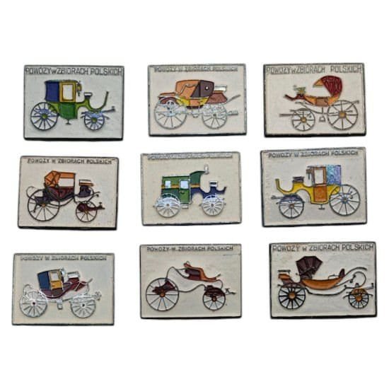 POLAND Old carriages / vintage lapel pins lot / 9 pcs.