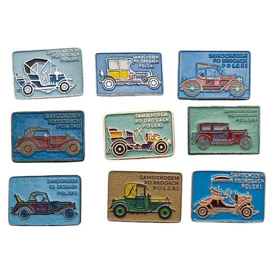 POLAND Old cars / vintage lapel pins lot / 9 pcs.