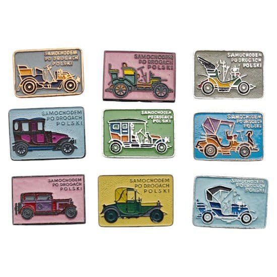 POLAND Old cars / vintage lapel pins lot / 9 pcs.