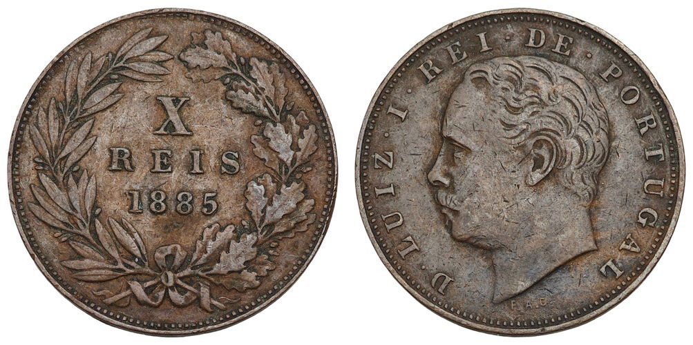 PORTUGAL 10 reis 1885 VF