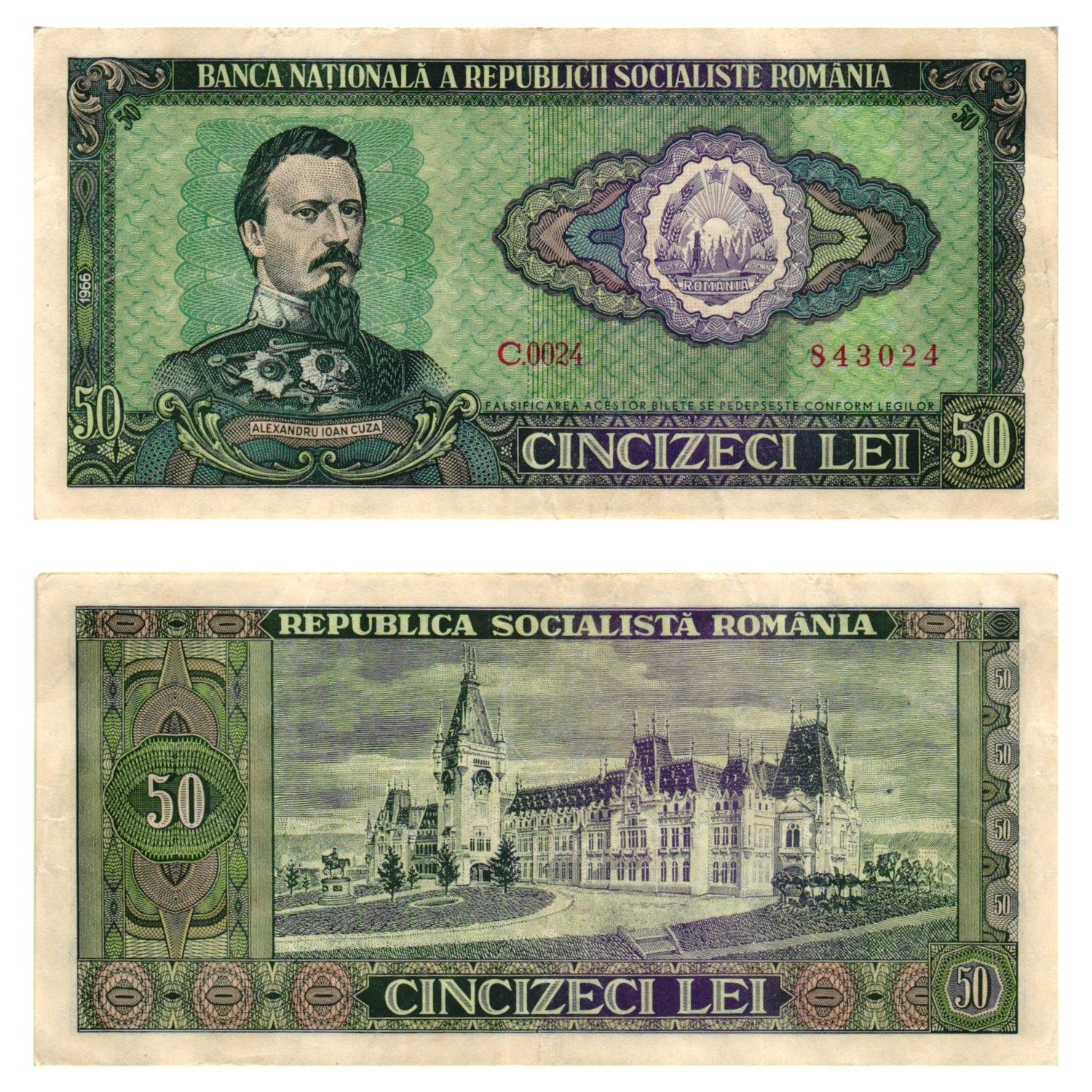 ROMANIA 50 lei 1966 VF+