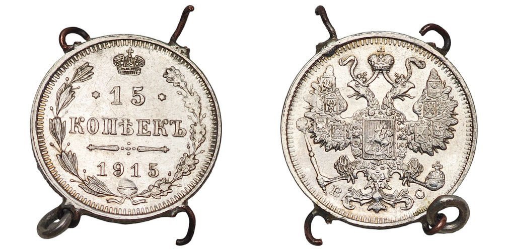 RUSSIA 15 kopeks 1915 / Empire / Silver / used as jewelry / VG