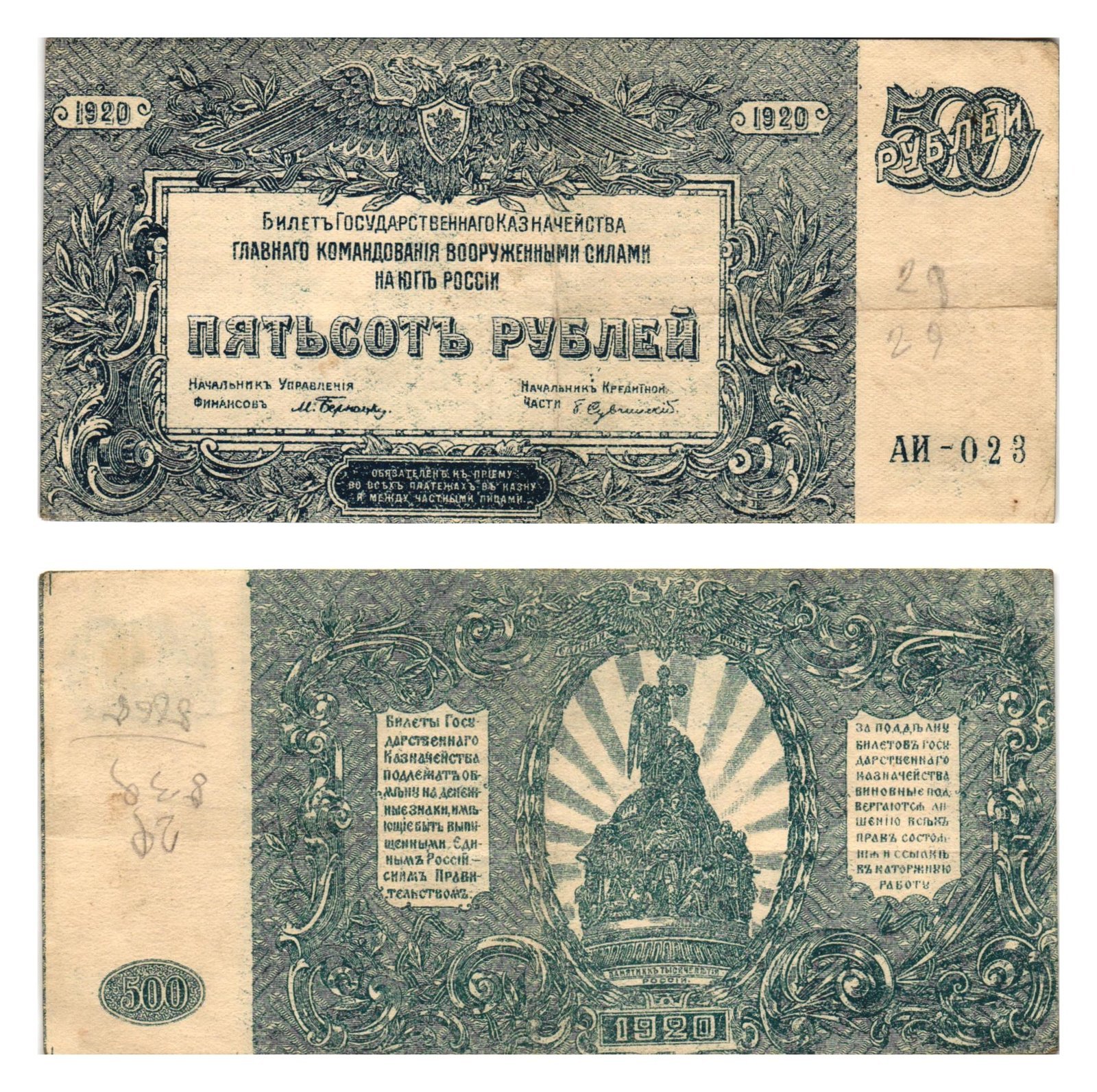 RUSSIA 500 rubles 1920 / South Russia / Civil war issue / VF-