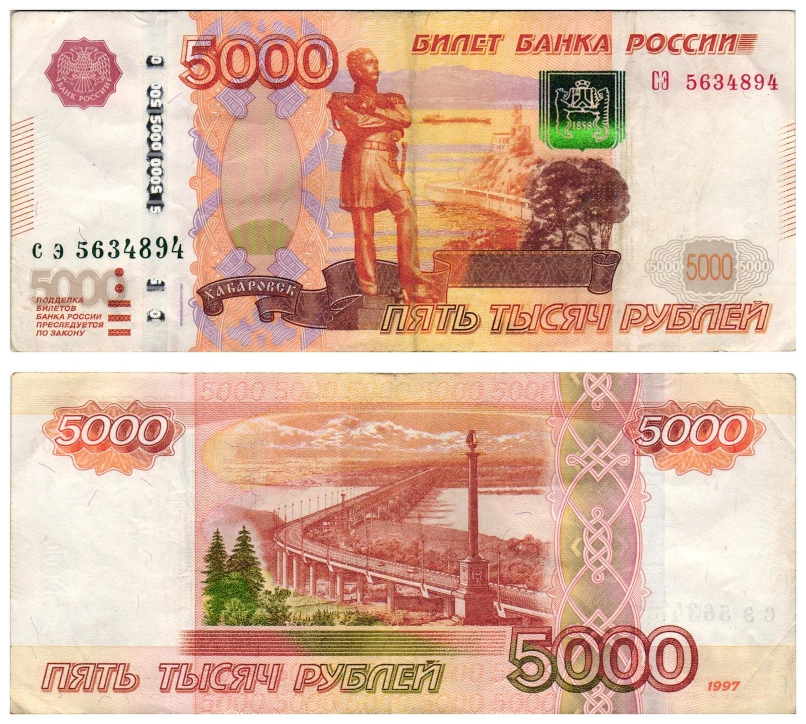 RUSSIA 5000 rubles 1997 VF