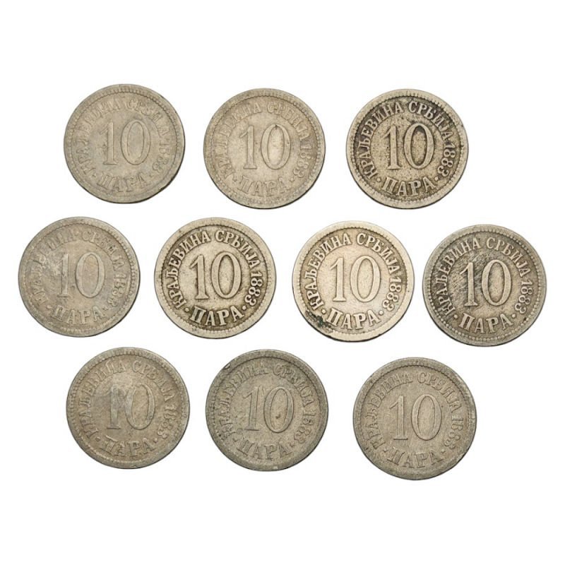 SERBIA 10 para 1883 coins lot 10 pcs.