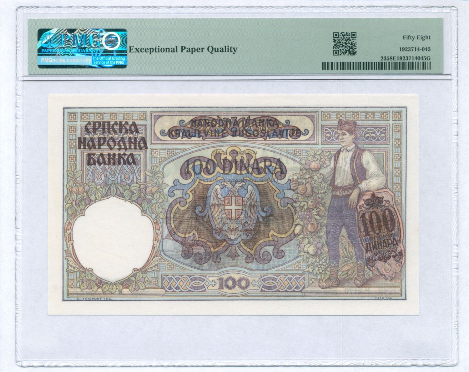 SERBIA 100 dinara 1941 / WWII issue / PMG 58 EPQ