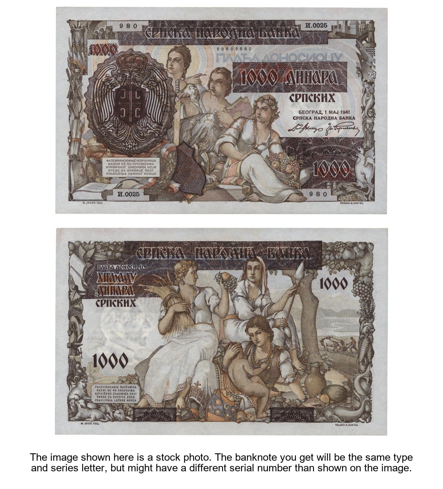 SERBIA 1000 dinara 1941 / WWII issue / UNC-