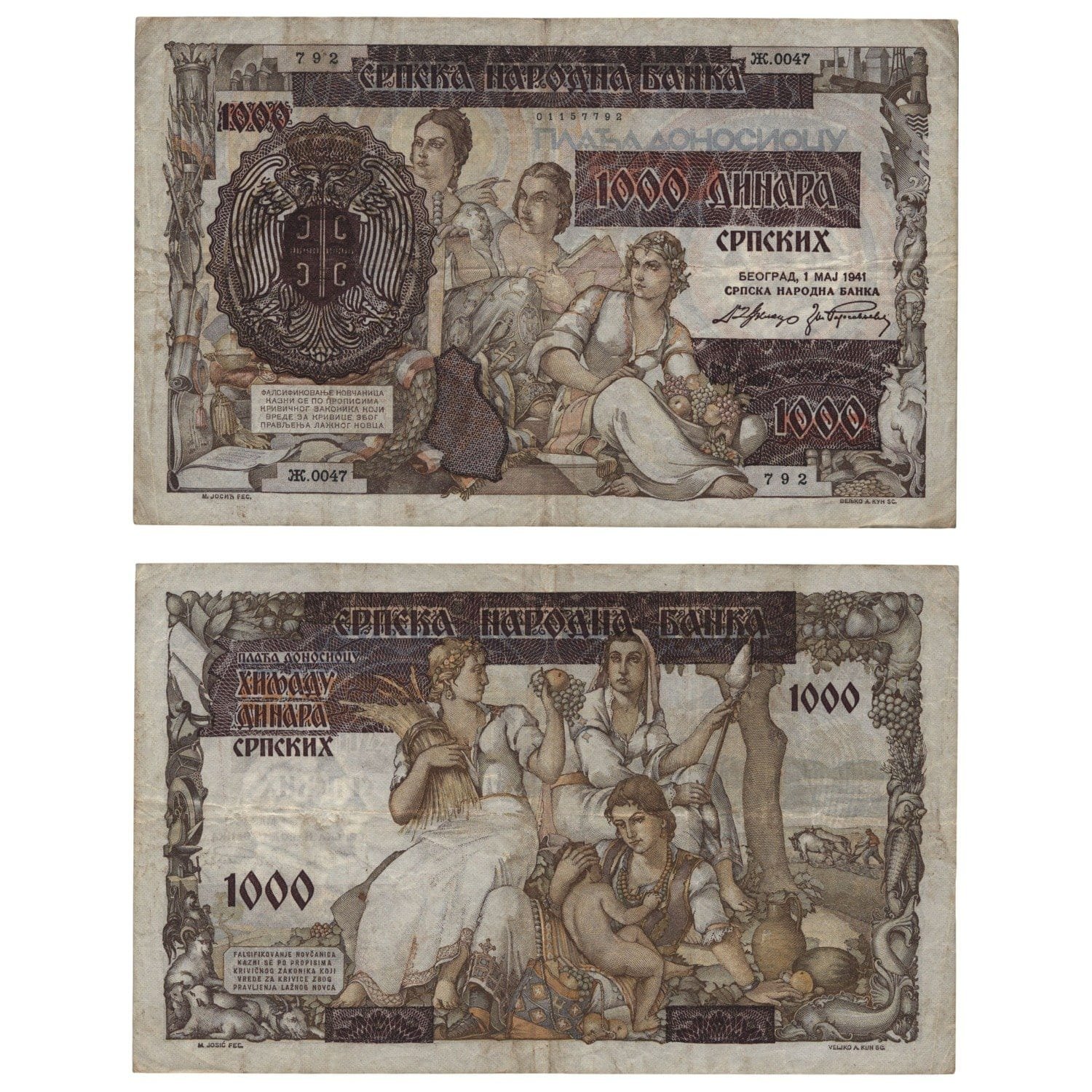 SERBIA 1000 dinara 1941 / WWII issue / VF-