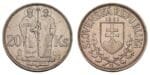 SLOVAKIA 20 korun 1941 / WWII issue / Saints Cyril And Methodius / Silver / XF