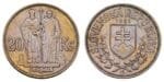 SLOVAKIA 20 korun 1941 / WWII issue / Saints Cyril And Methodius / Silver / XF