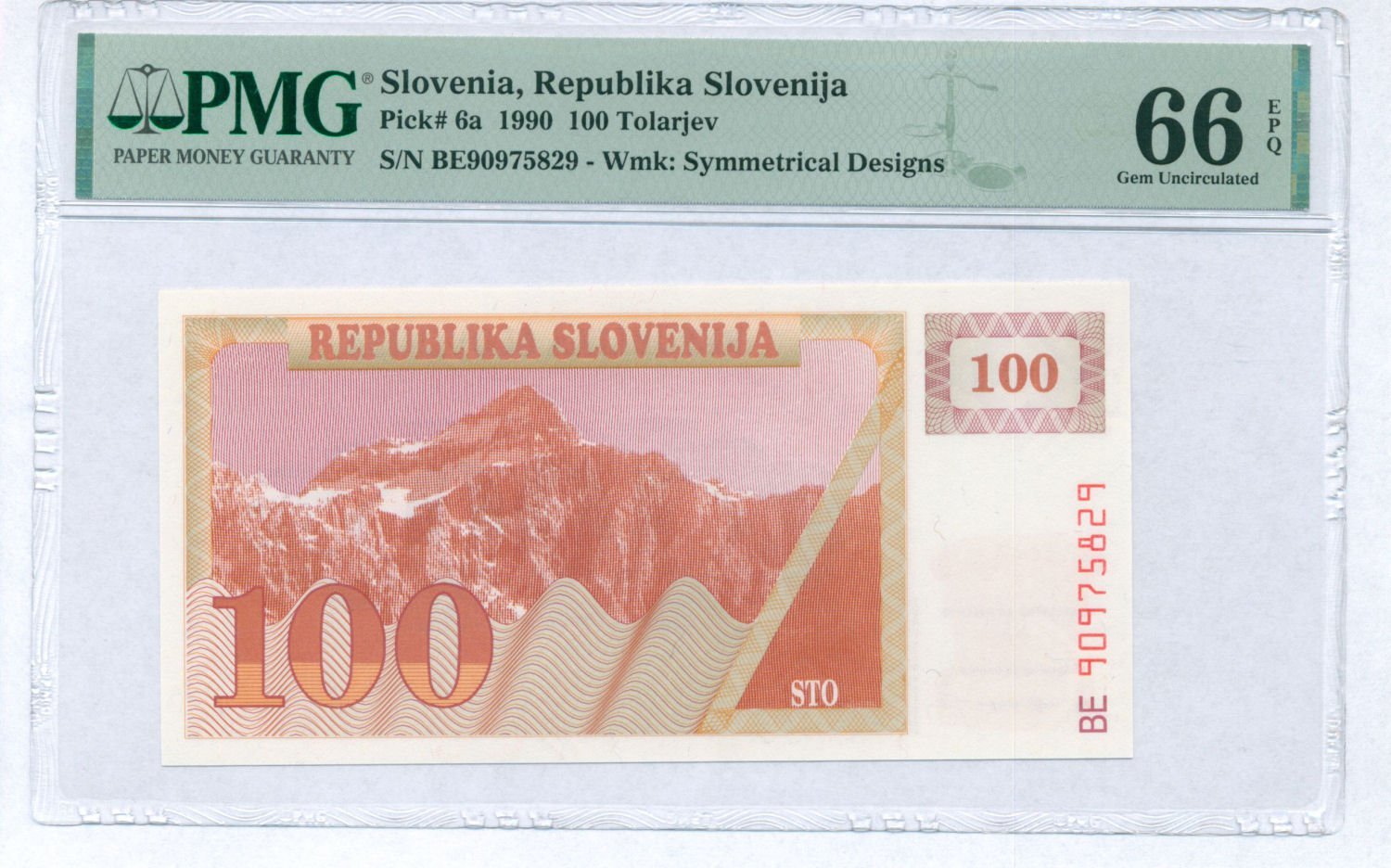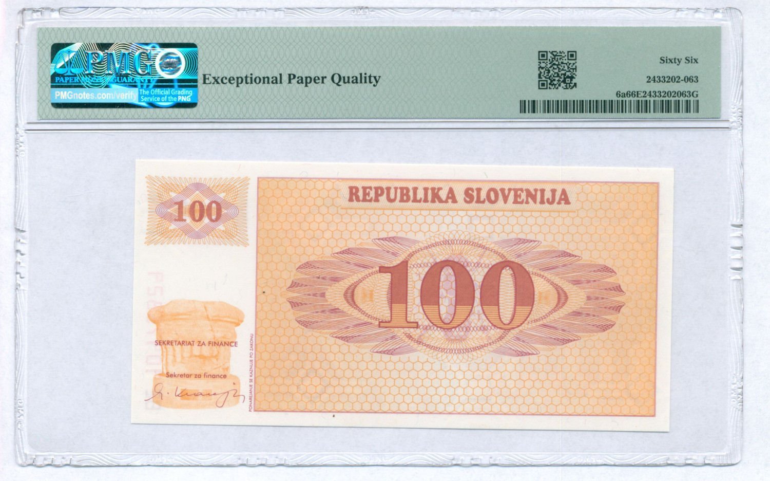 SLOVENIA 100 tolarjev 1990 PMG 66 EPQ