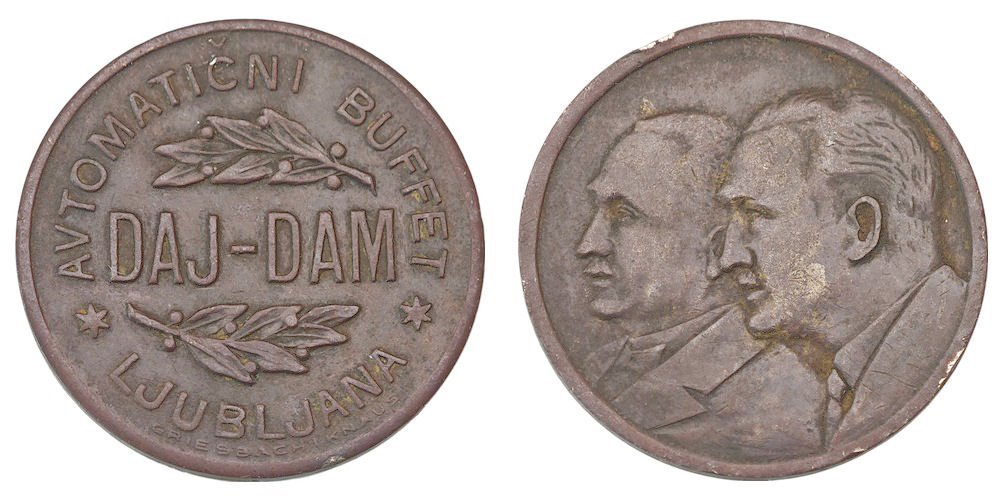 SLOVENIA Ljubljana / Daj Dam Avtomatični Buffet / Automatic Buffet / vintage token / Griesbach & Knaus / 1930s(?) VF