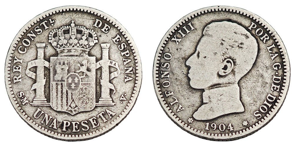 SPAIN 1 peseta 1904 / Silver / VF