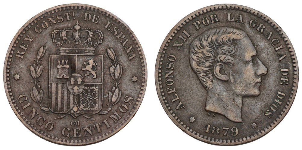 SPAIN 5 centimos 1879OM VF