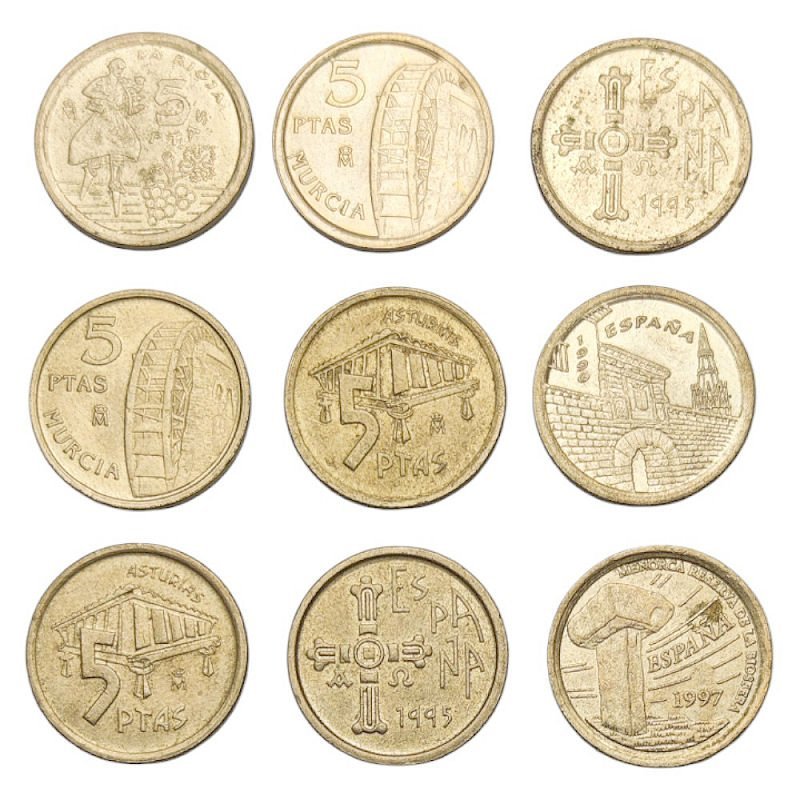 SPAIN 5 pesetas coins lot 9 pcs.