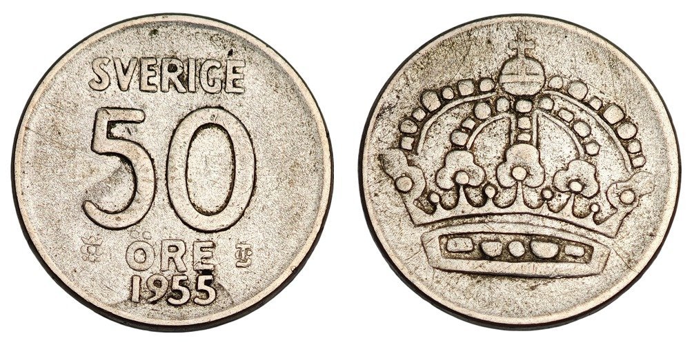 SWEDEN 50 ore 1955 / Silver / VF