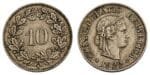 SWITZERLAND 10 rappen 1922 VF