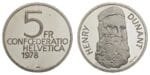 SWITZERLAND 5 francs 1978 / 150th Anniversary of the Birth of Henry Dunant / UNC