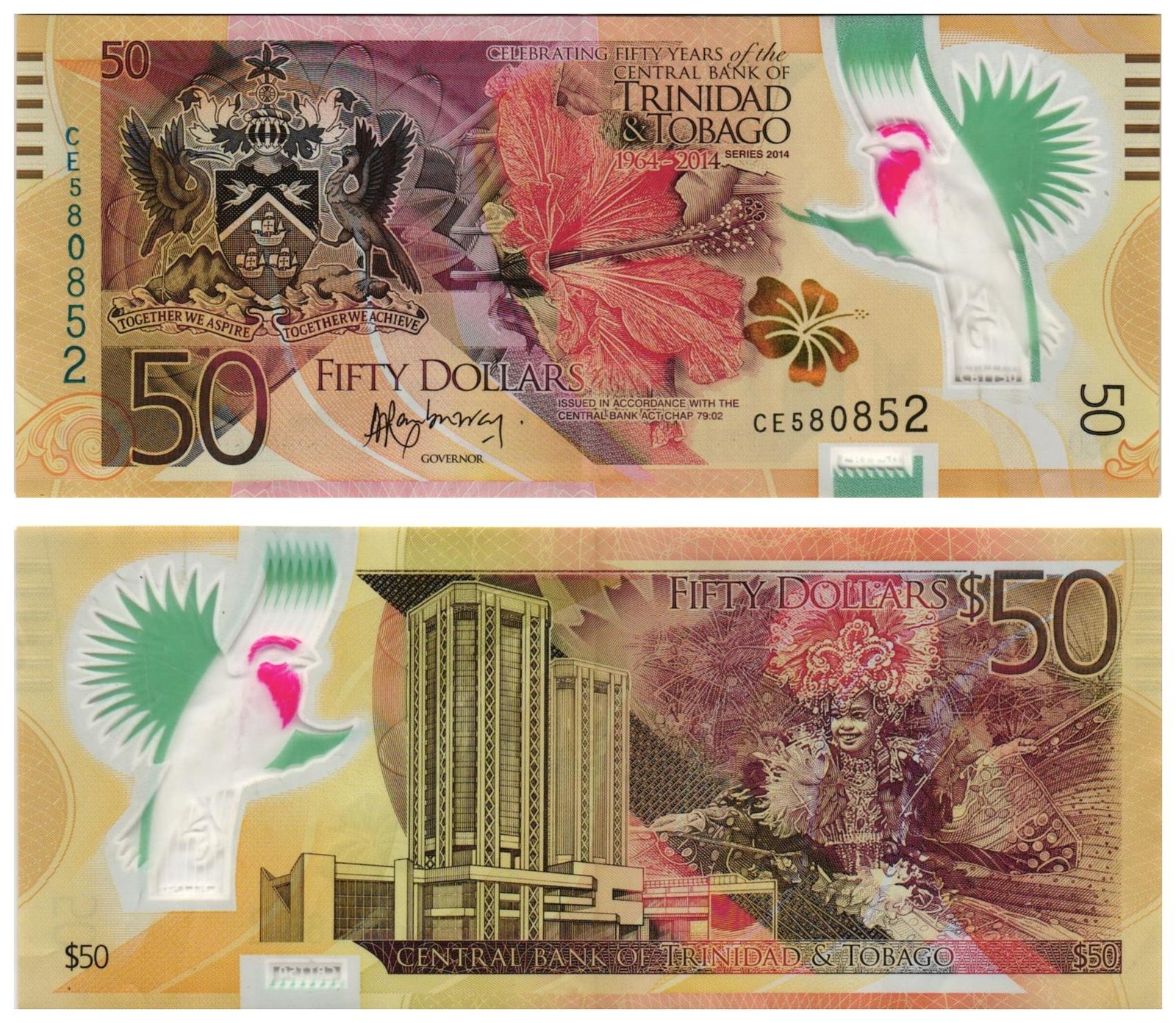 TRINIDAD AND TOBAGO 50 dollars 2014 / 50th Anniversary of the Central Bank / polymer plastic / VF
