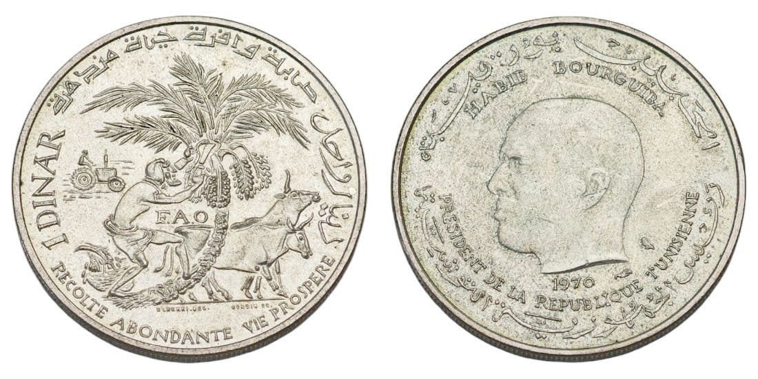 TUNISIA 1 dinar 1970 / FAO / Silver / UNC-