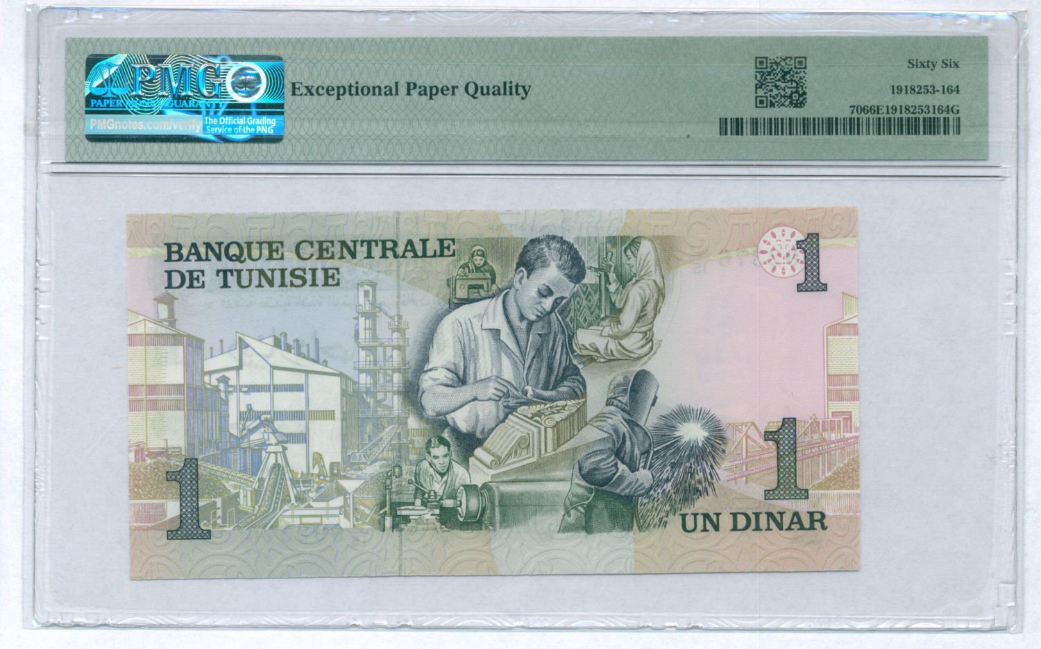 TUNISIA 1 dinar 1973 PMG 66 EPQ