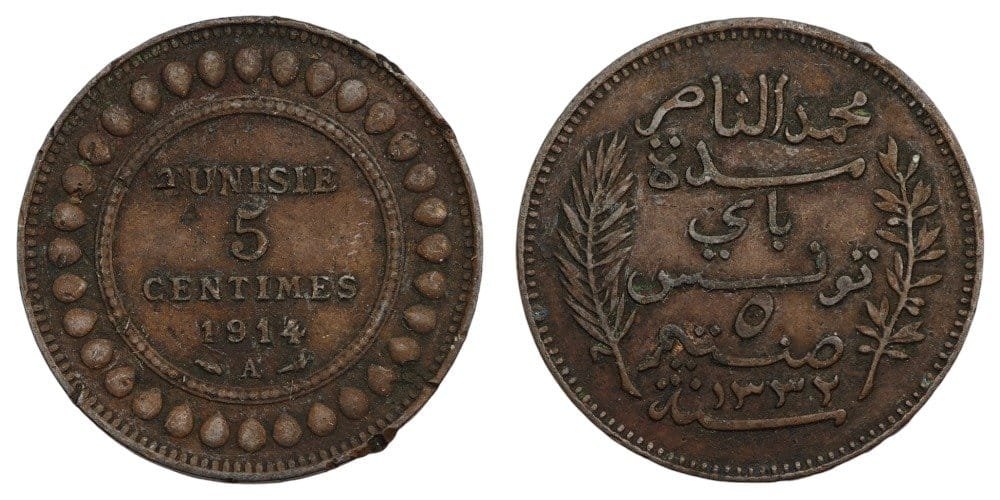 TUNISIA 5 centimes 1914A / French protectorate / VF-