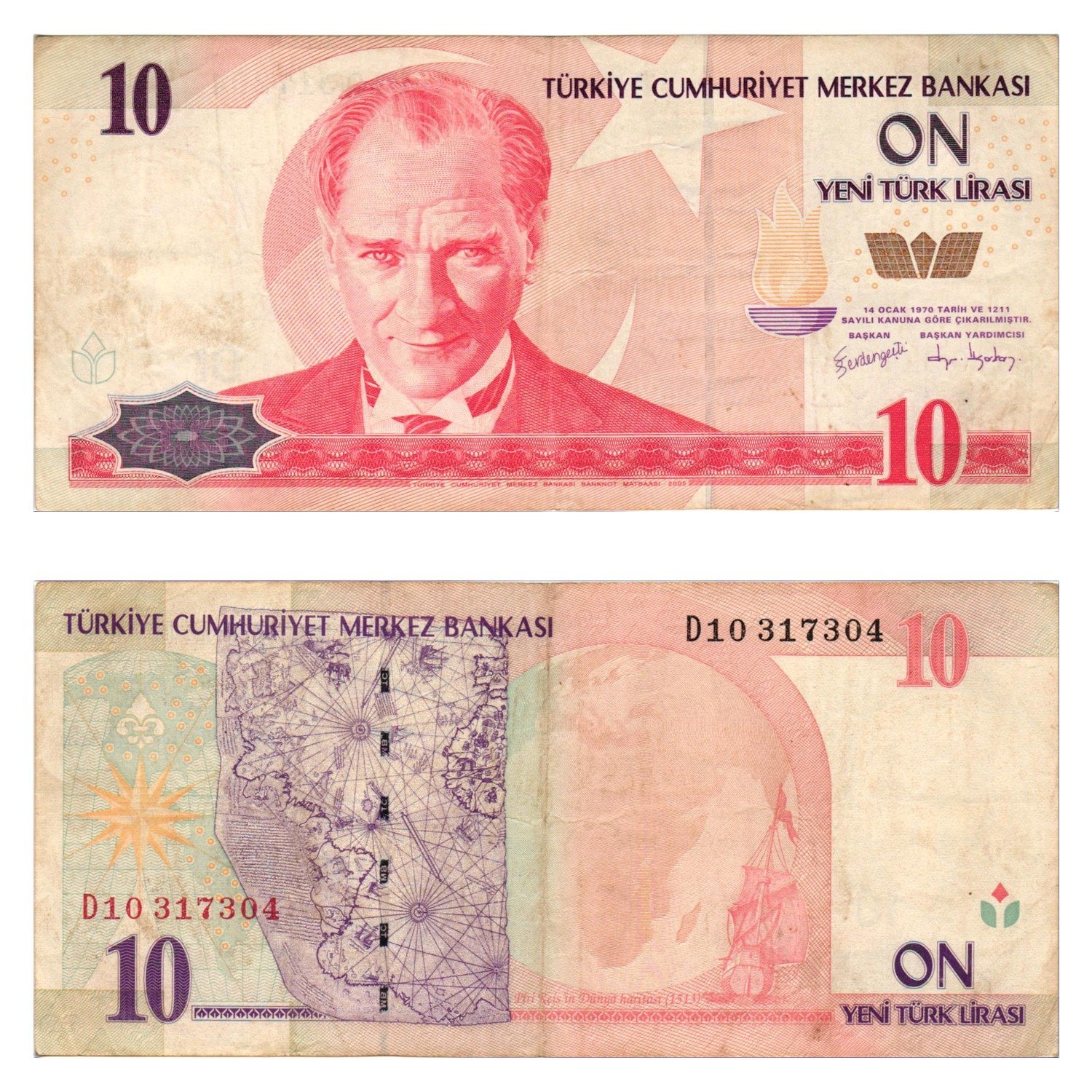 TURKEY 10 lira 2005 VF