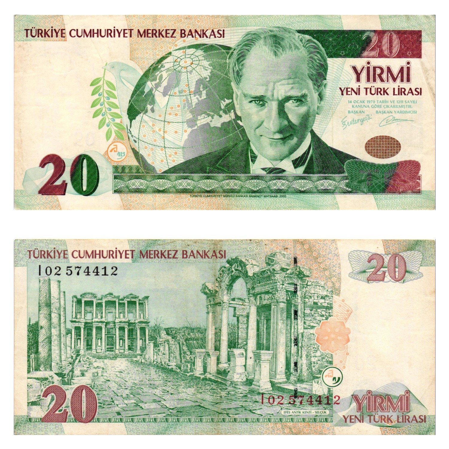 TURKEY 20 lira 2005 VF