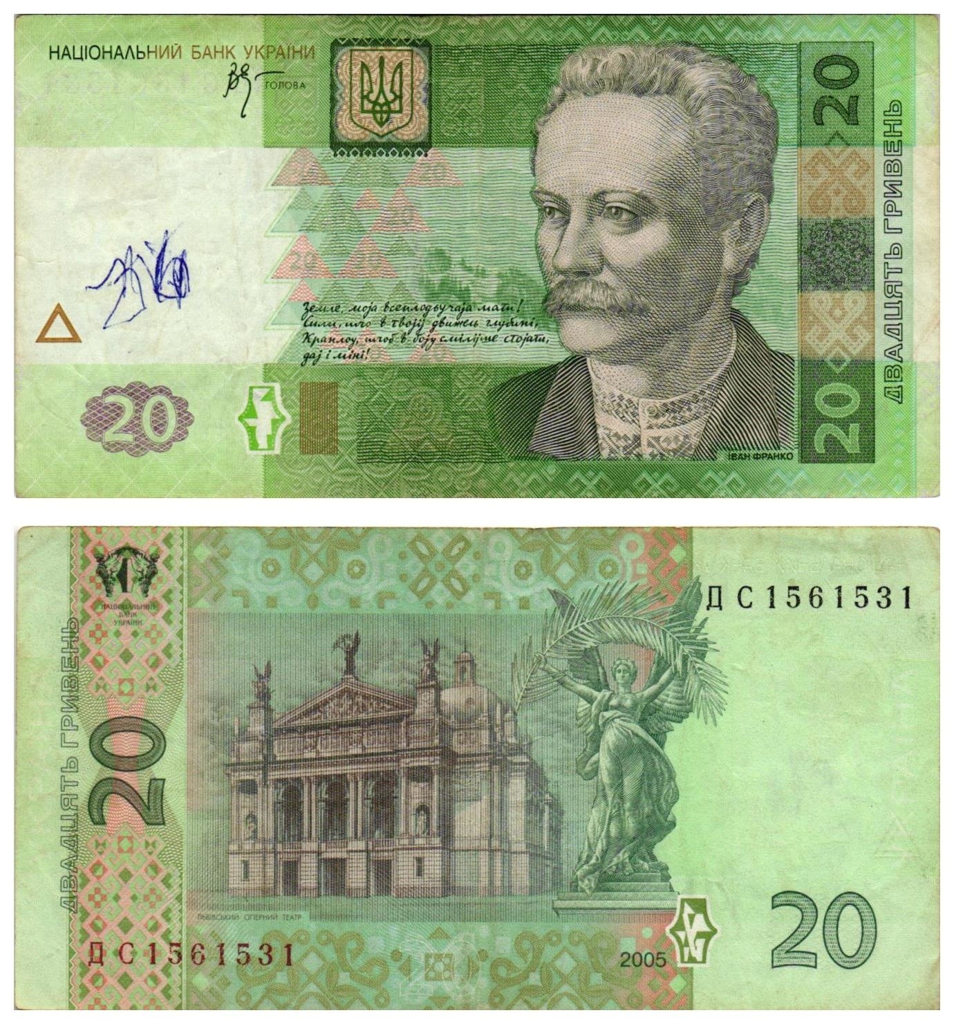 UKRAINE 20 hryvnia 2005 VF-