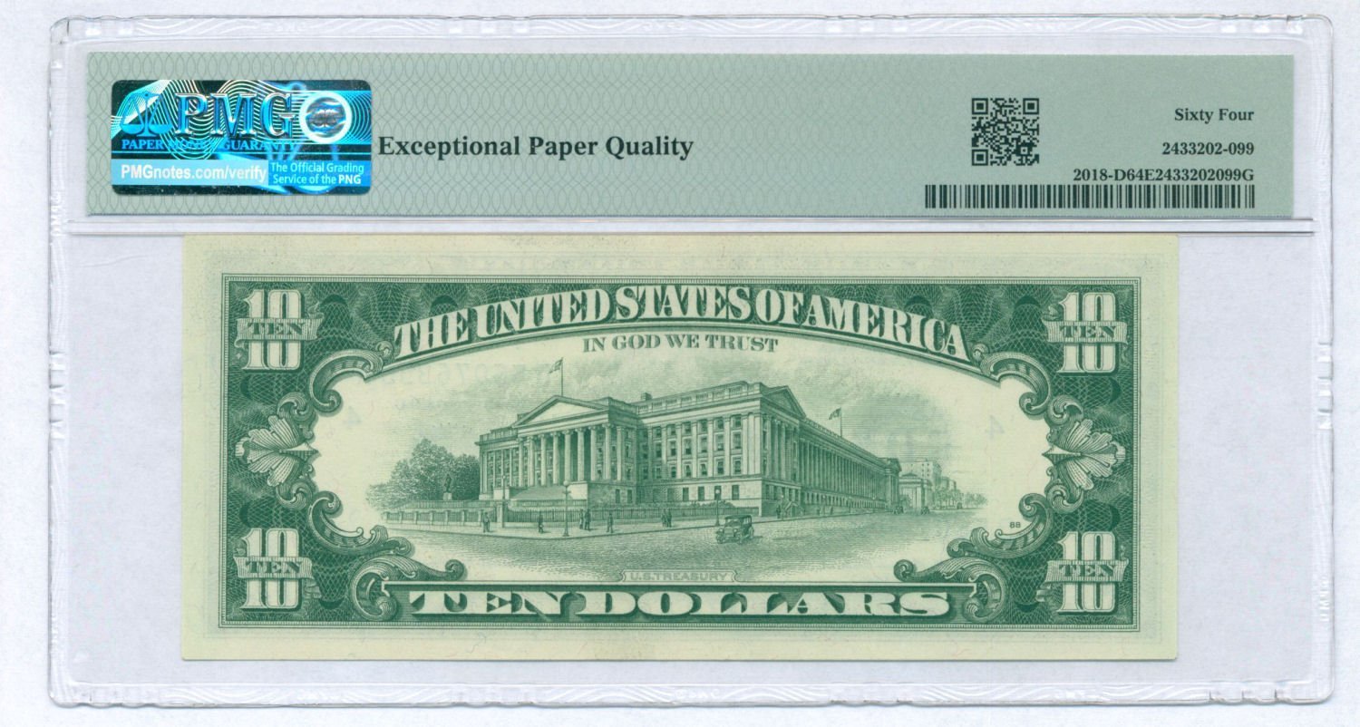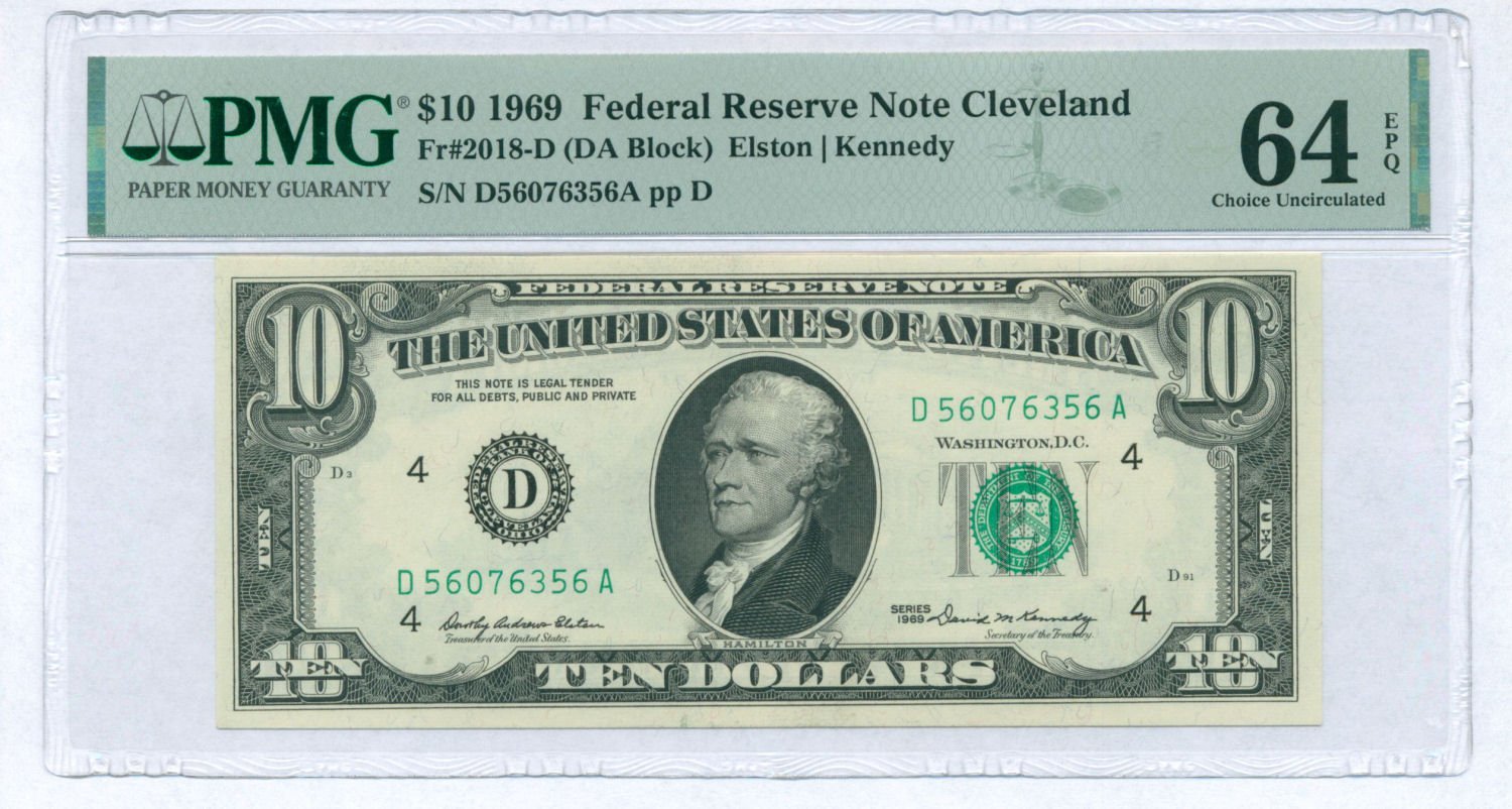 UNITED STATES OF AMERICA 10 dollars 1969 / Letter D / Cleveland / PMG 64 EPQ