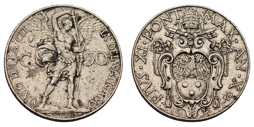 VATICAN CITY 50 centesimi 1931 VF
