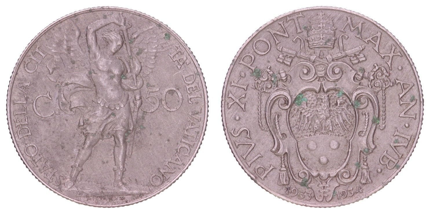VATICAN CITY 50 centesimi 1933-1934 VF