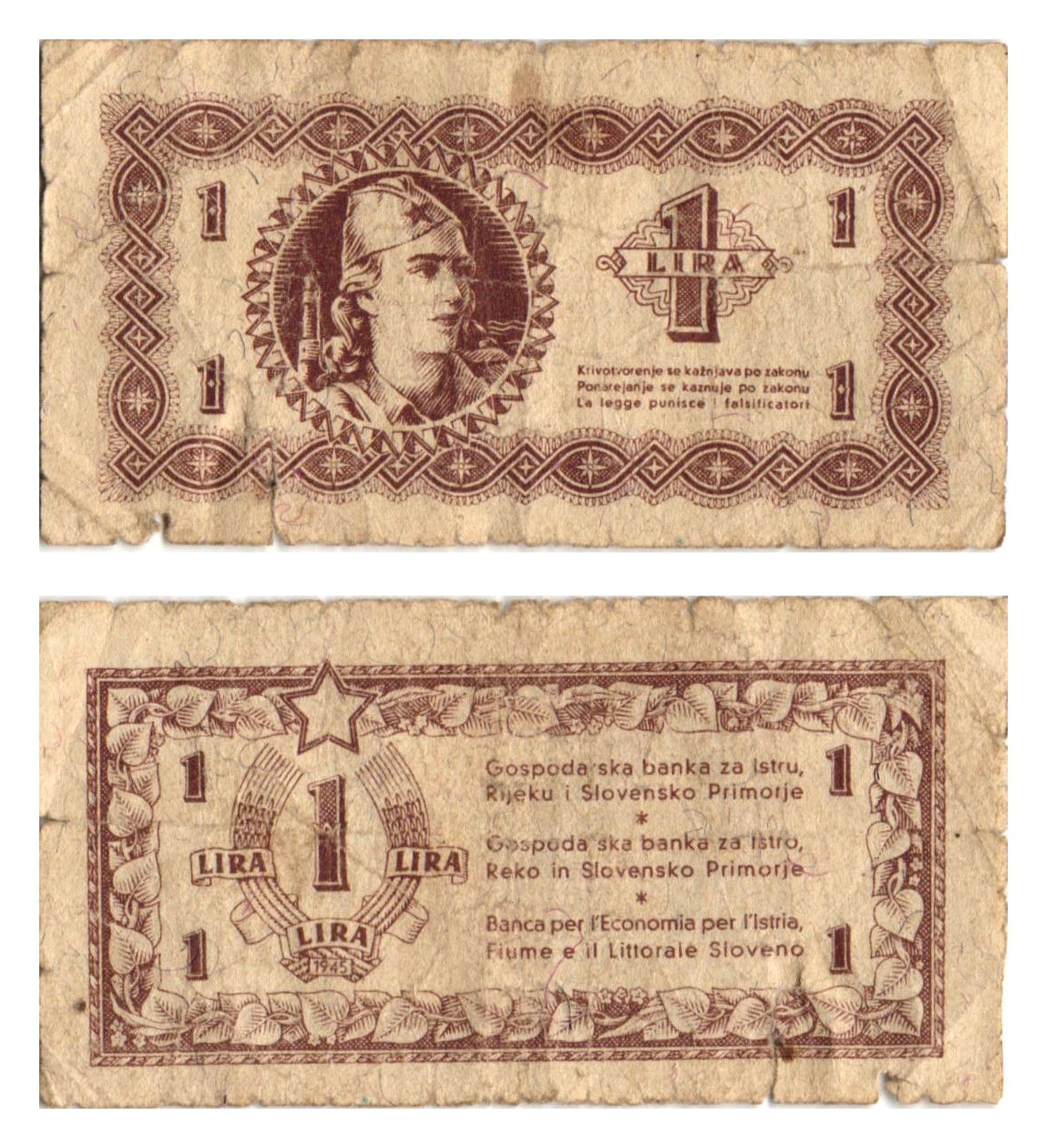 YUGOSLAVIA 1 lira 1945 / Economy Bank for Istra, Rijeka and Slovenian Littoral Region / F