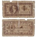 YUGOSLAVIA 1 lira 1945 / Economy Bank for Istra, Rijeka and Slovenian Littoral Region / large tear / VG-