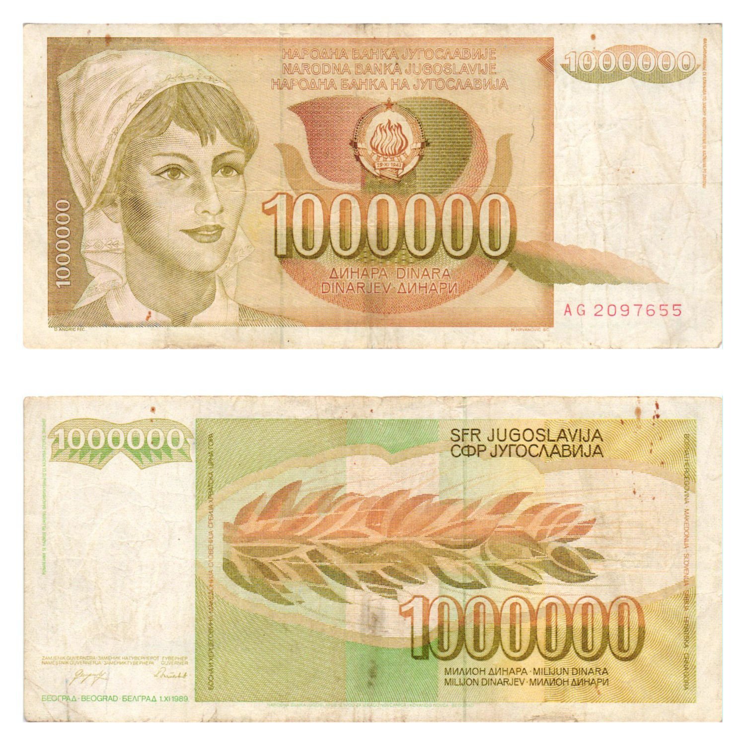 YUGOSLAVIA 1 million dinara 1989 VF-