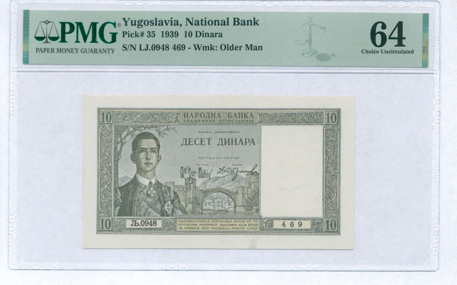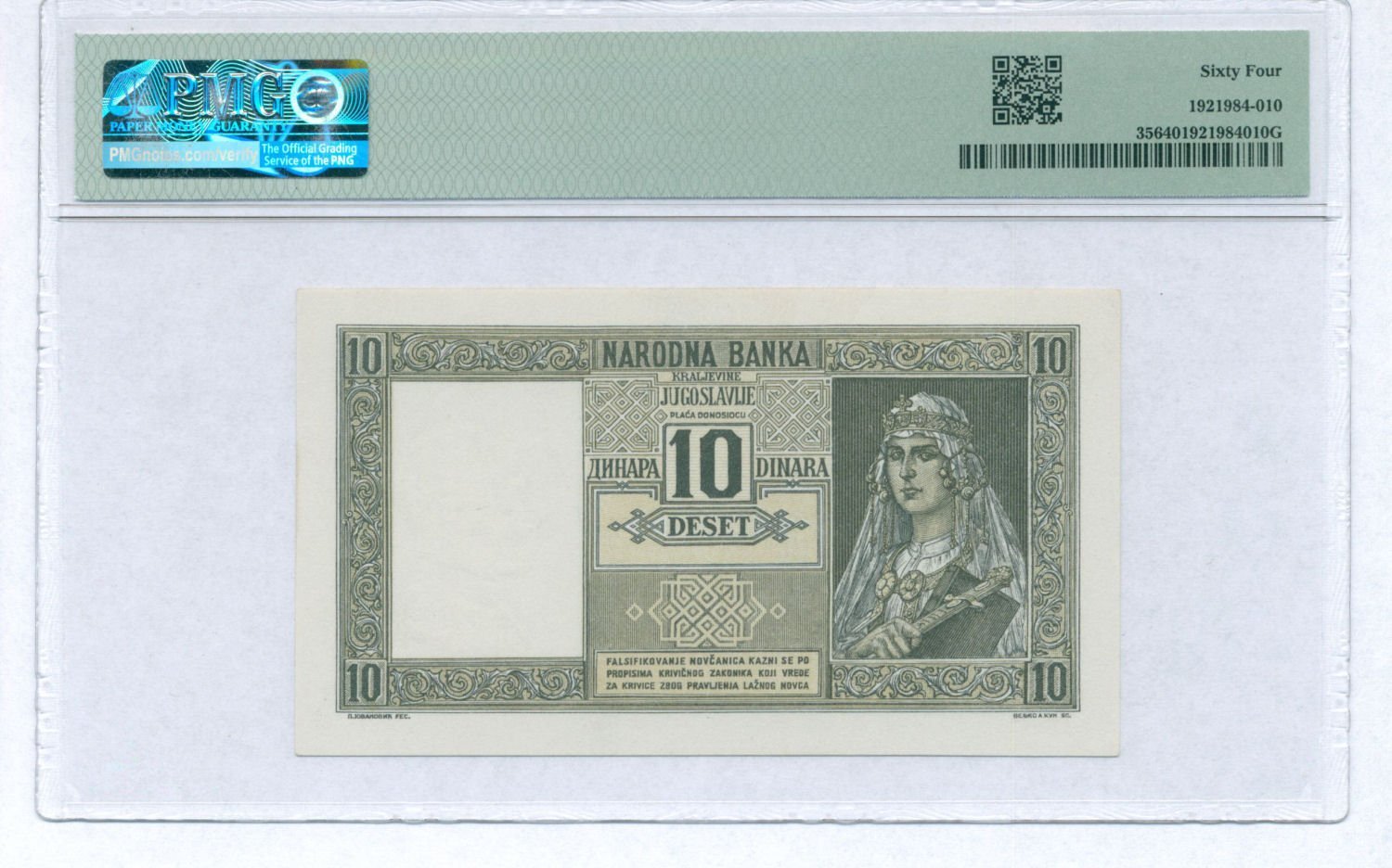 YUGOSLAVIA 10 dinara 1939 PMG 64
