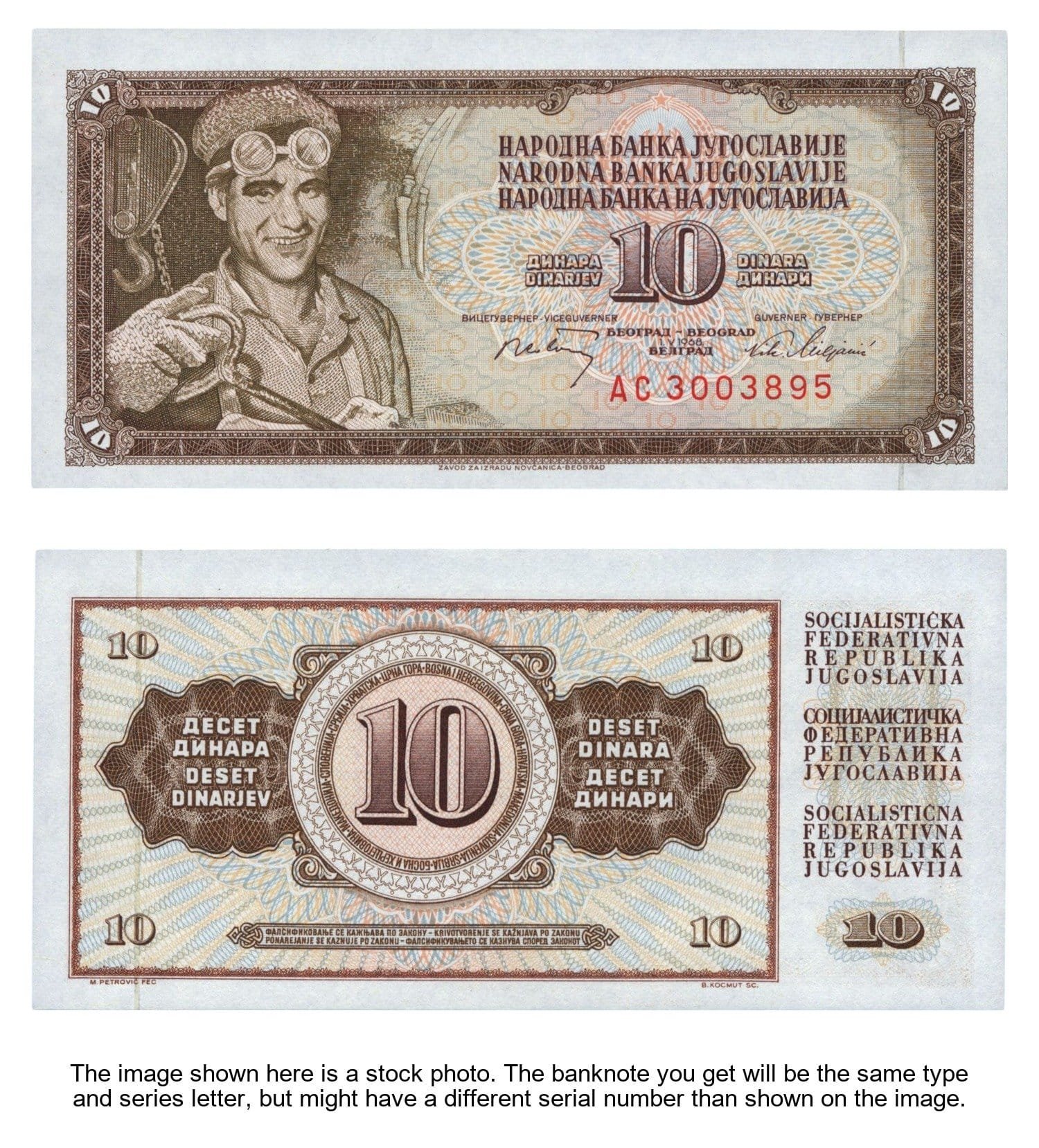 YUGOSLAVIA 10 dinara 1968 / AC series / 7 digits / UNC