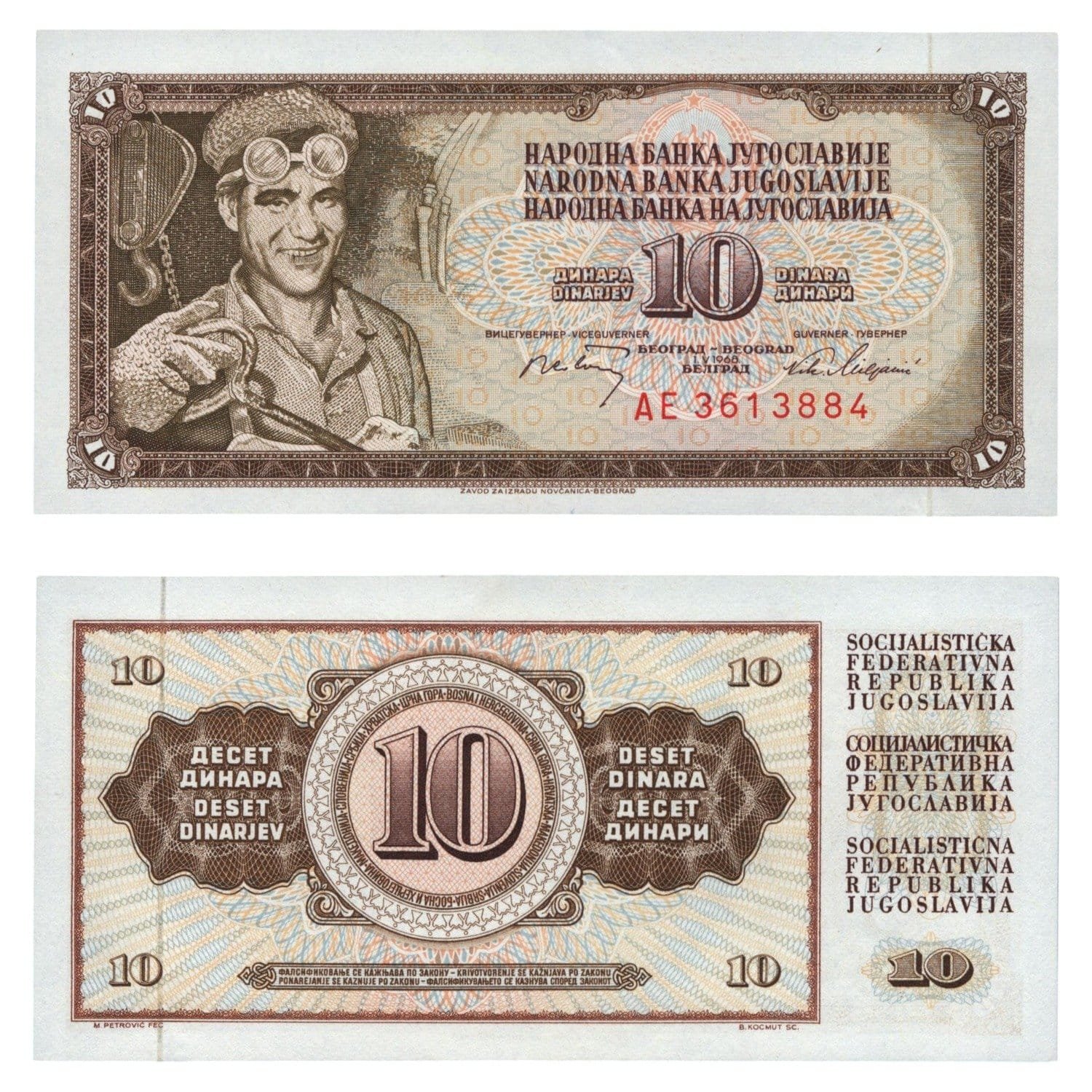 YUGOSLAVIA 10 dinara 1968 / AE seires / 7 digits / UNC
