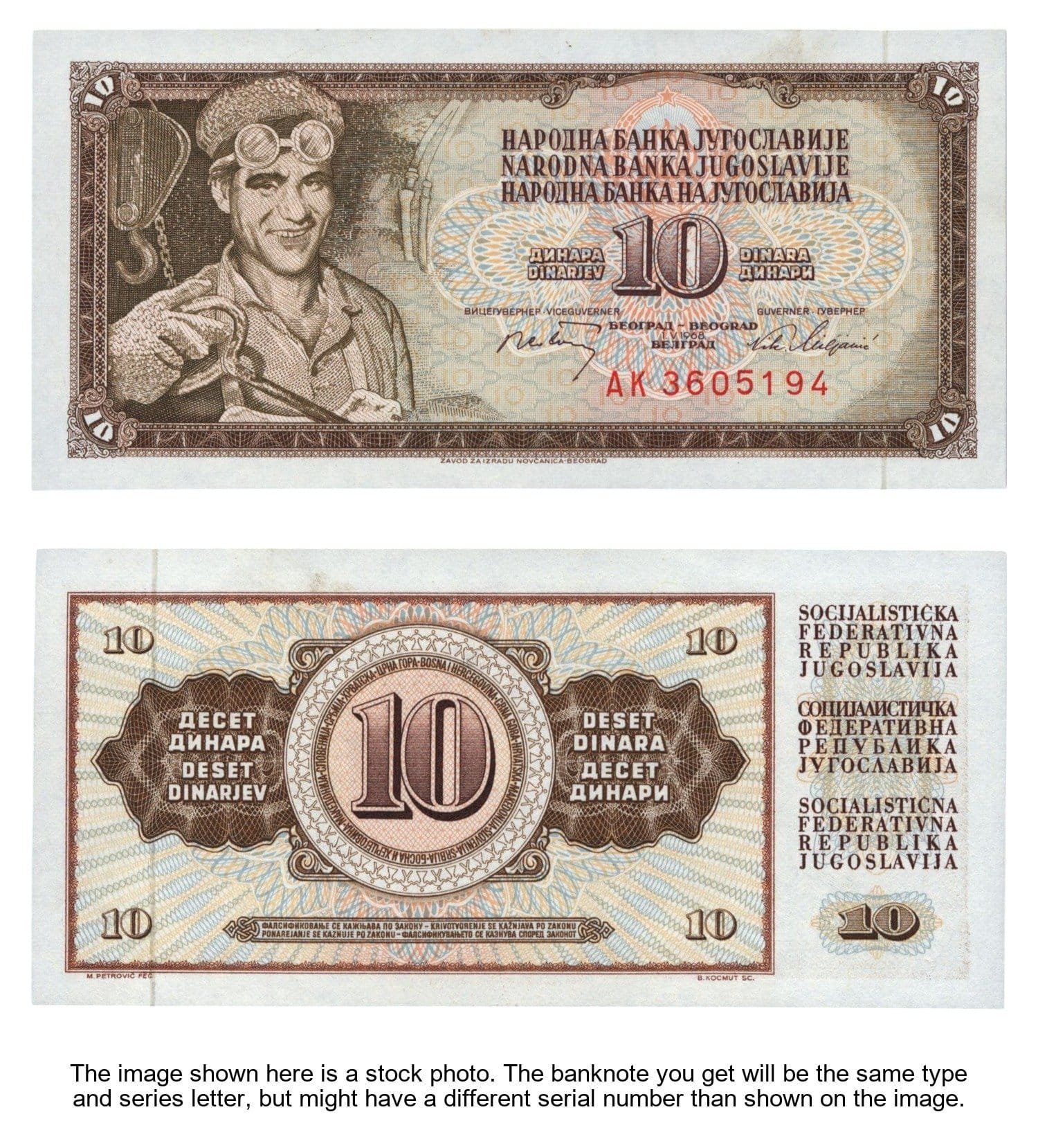 YUGOSLAVIA 10 dinara 1968 / AK series / 7 digits / UNC