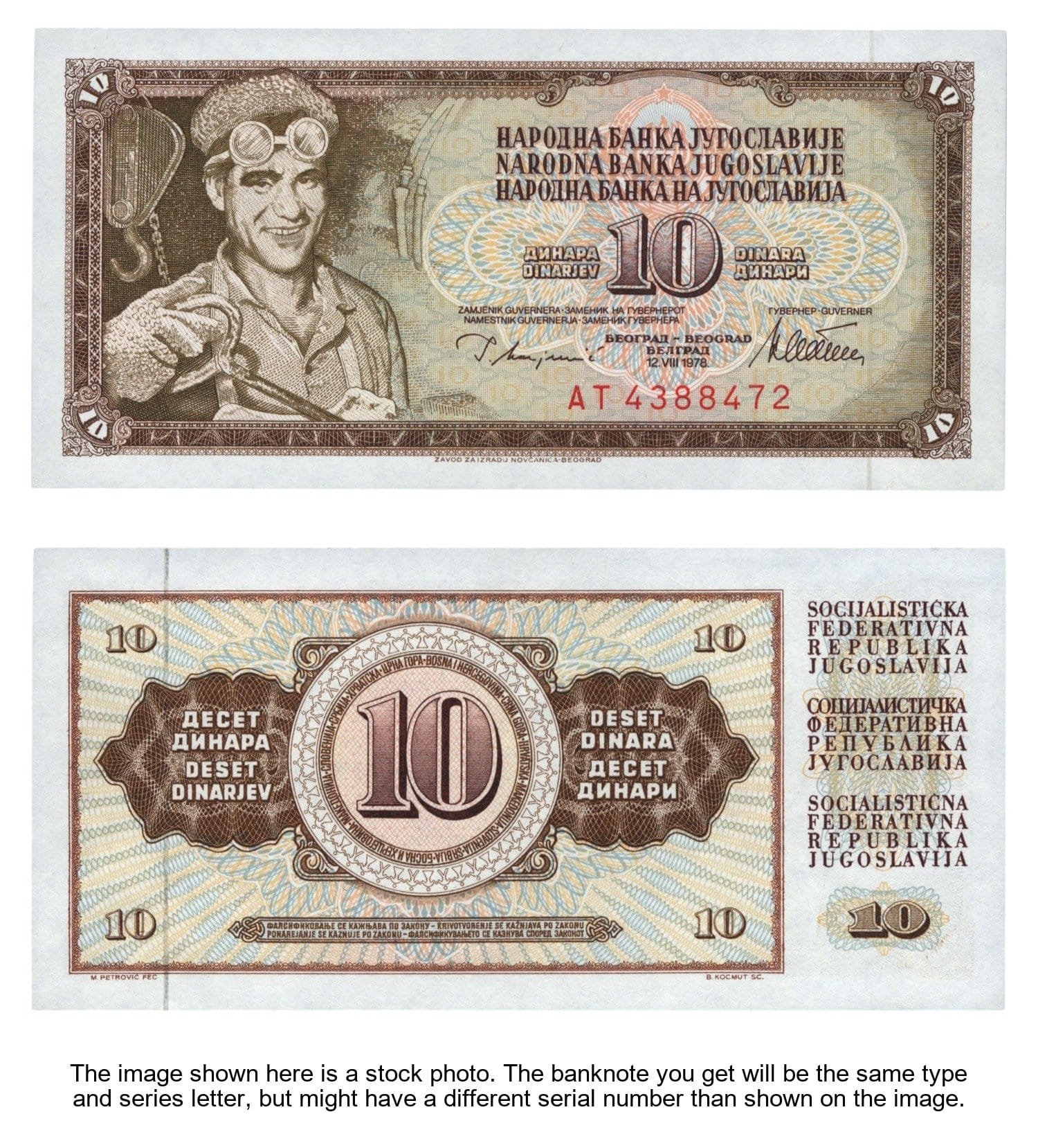 YUGOSLAVIA 10 dinara 1978 / AT series / 7 digits / UNC