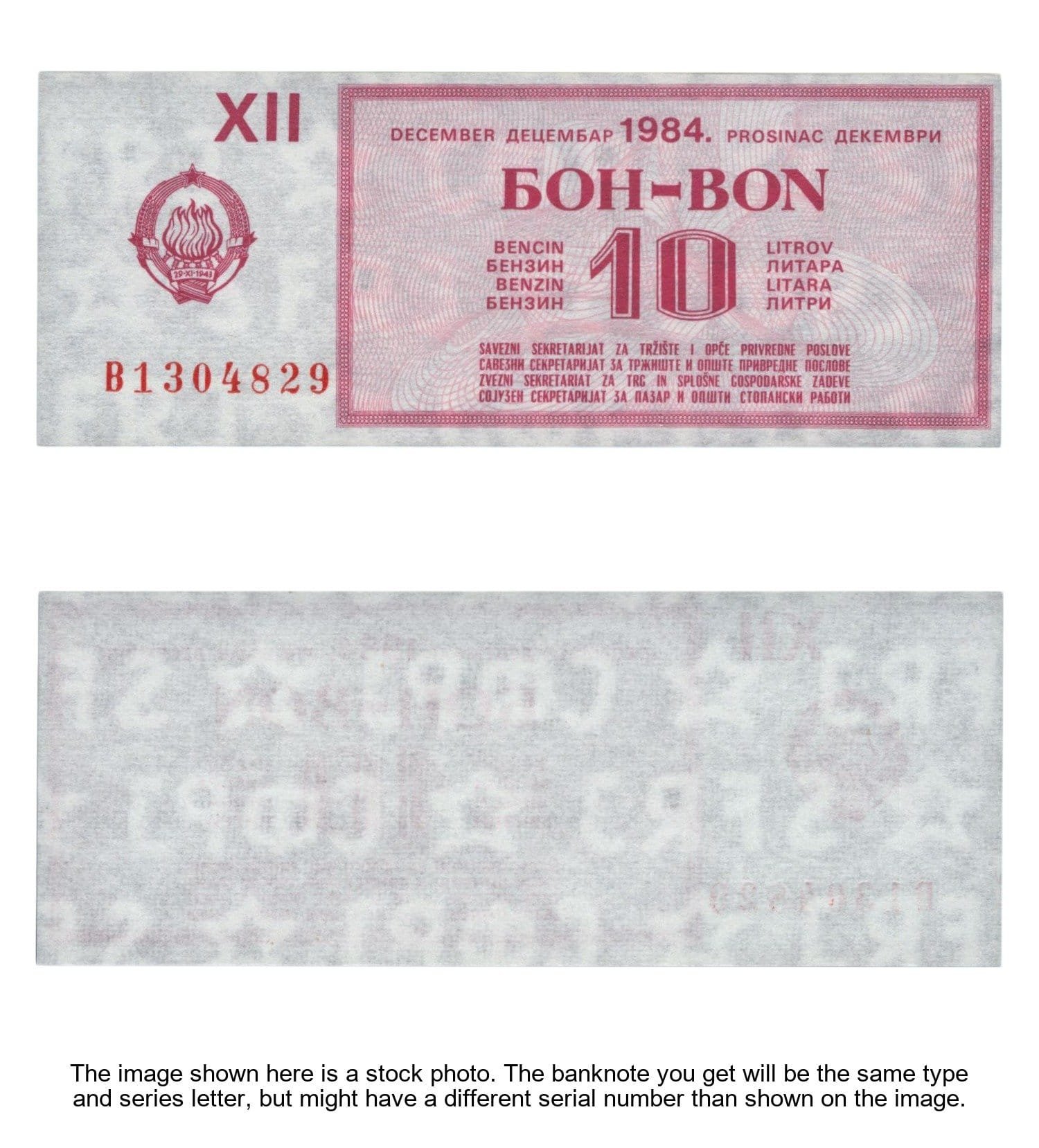 YUGOSLAVIA 10 liter of gasoline 1984 / December / Fuel Voucher / UNC